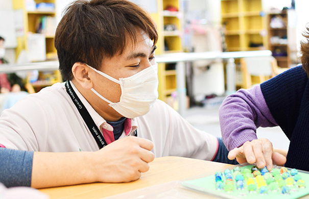 少人数制なのでコミュニケーションの取りやすい環境です。カフェスペースでは、ご利用者様同士のコミュニケーションや、スタッフも交えて、これからの目標や夢などのお話をして活力の向上がはかれます。